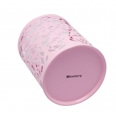Meetory Hollow Rose Cosmetic Metal Pencil Holder Stationery Container Organizer (Pink)